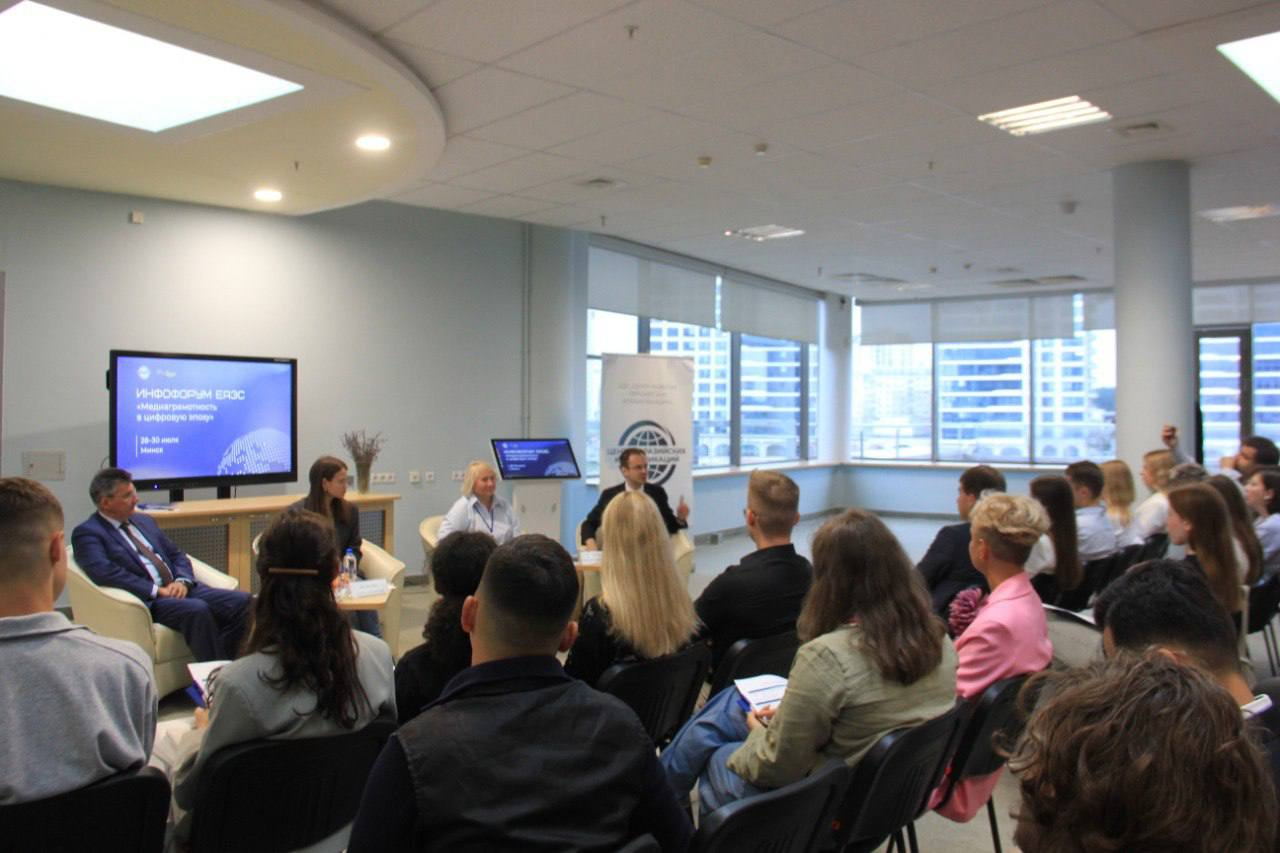 28–30 июля 2025 г. в Минске прошел международный инфофорум «Медиаграмотность в цифровую эпоху», организованный Центром евразийских коммуникаций при поддержке Фонда Горчакова. Форум собрал молодых корреспондентов, медиаменеджеров, студентов профильных вузов, блогеров и пиар-специалистов из стран ЕАЭС.